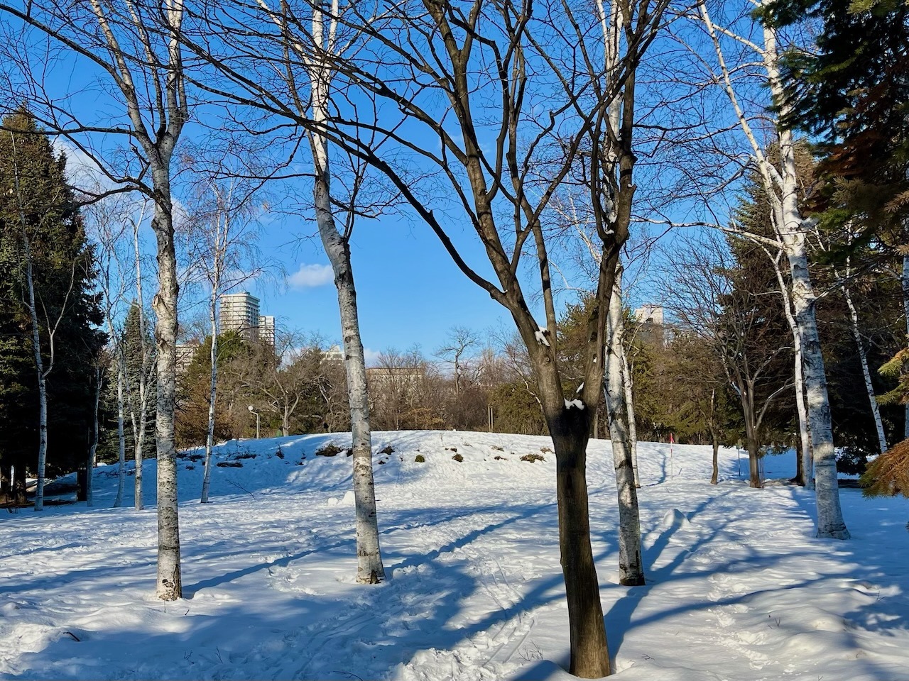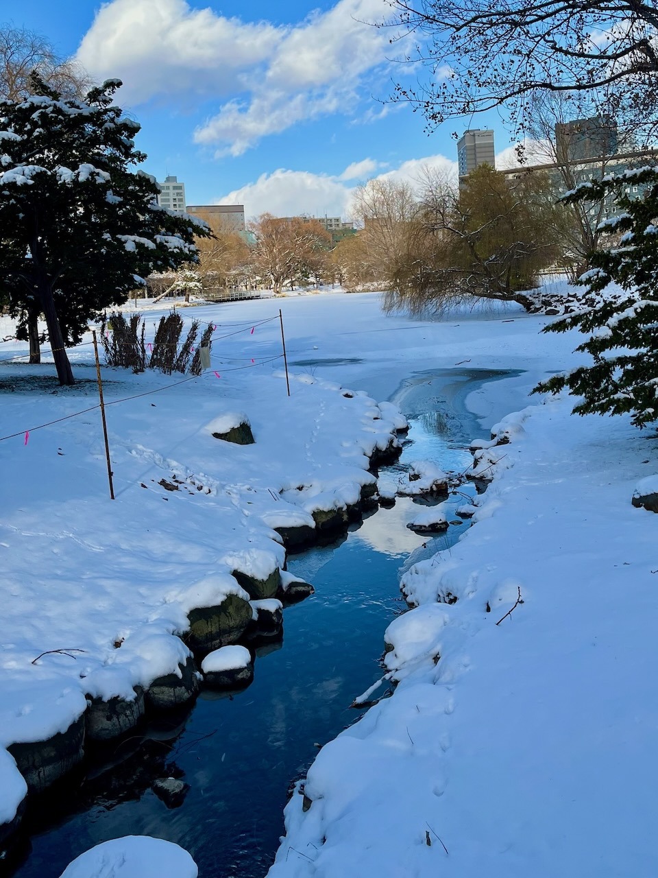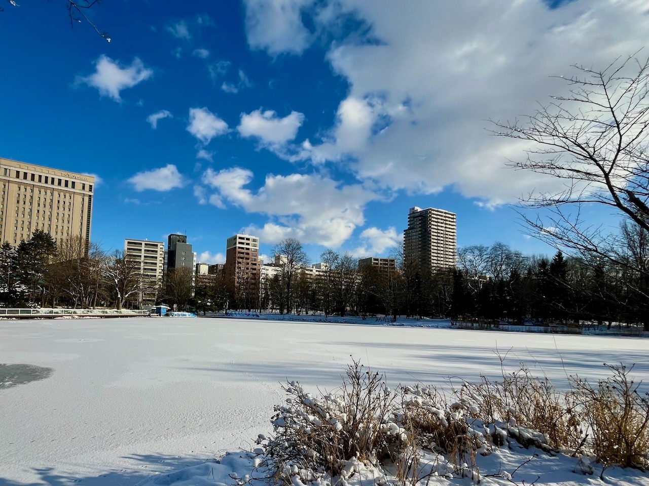 左側に高く見えるのは薄野の高層マンション。勿論ここは中島公園。