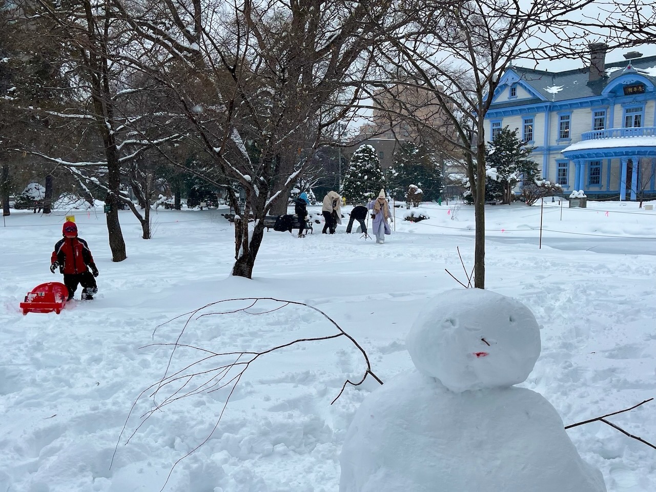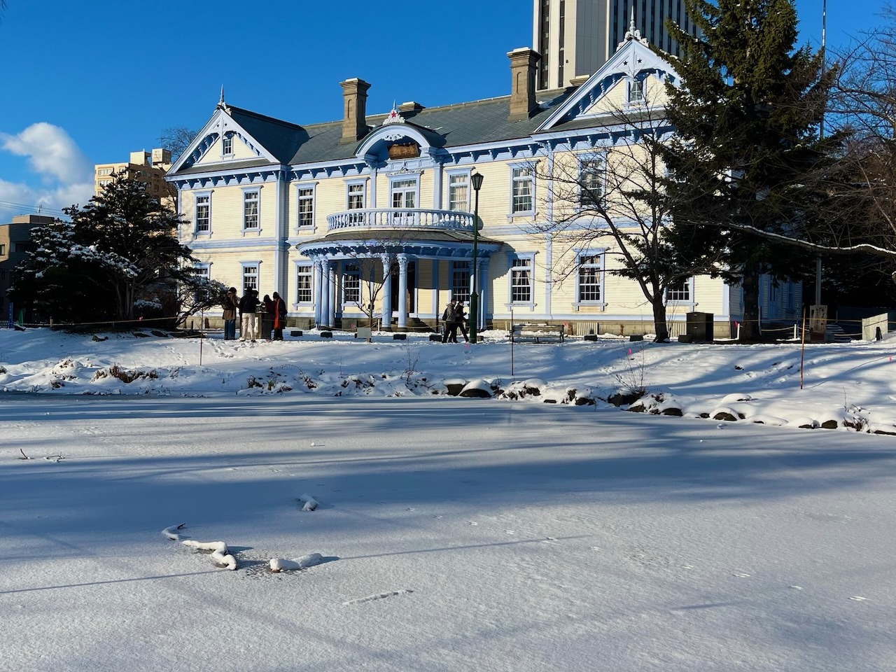 豊平館2階より撮影、左側の大木はシダレウンリュウヤナギ。