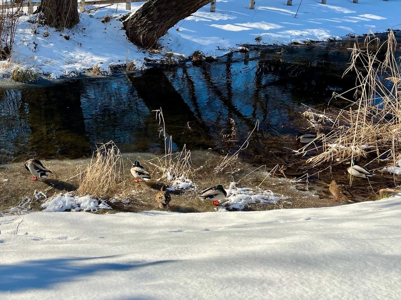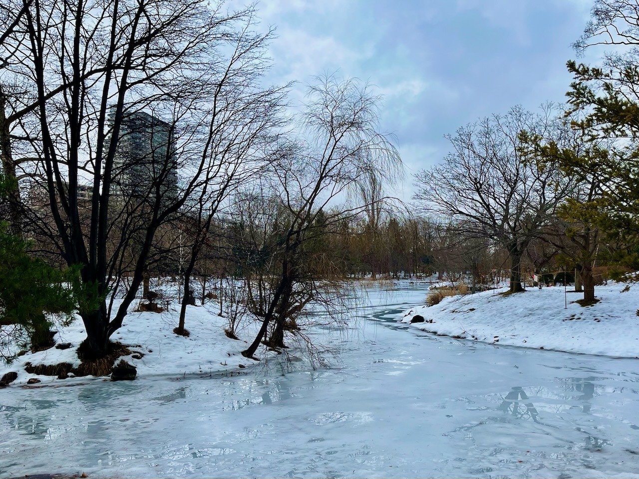 12月は全面的に凍結した池が溶けたりする。そして凍結する。