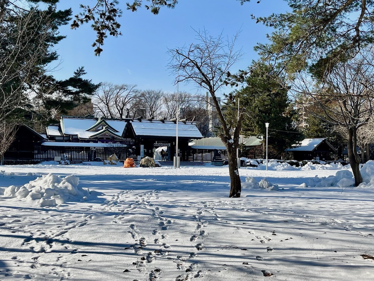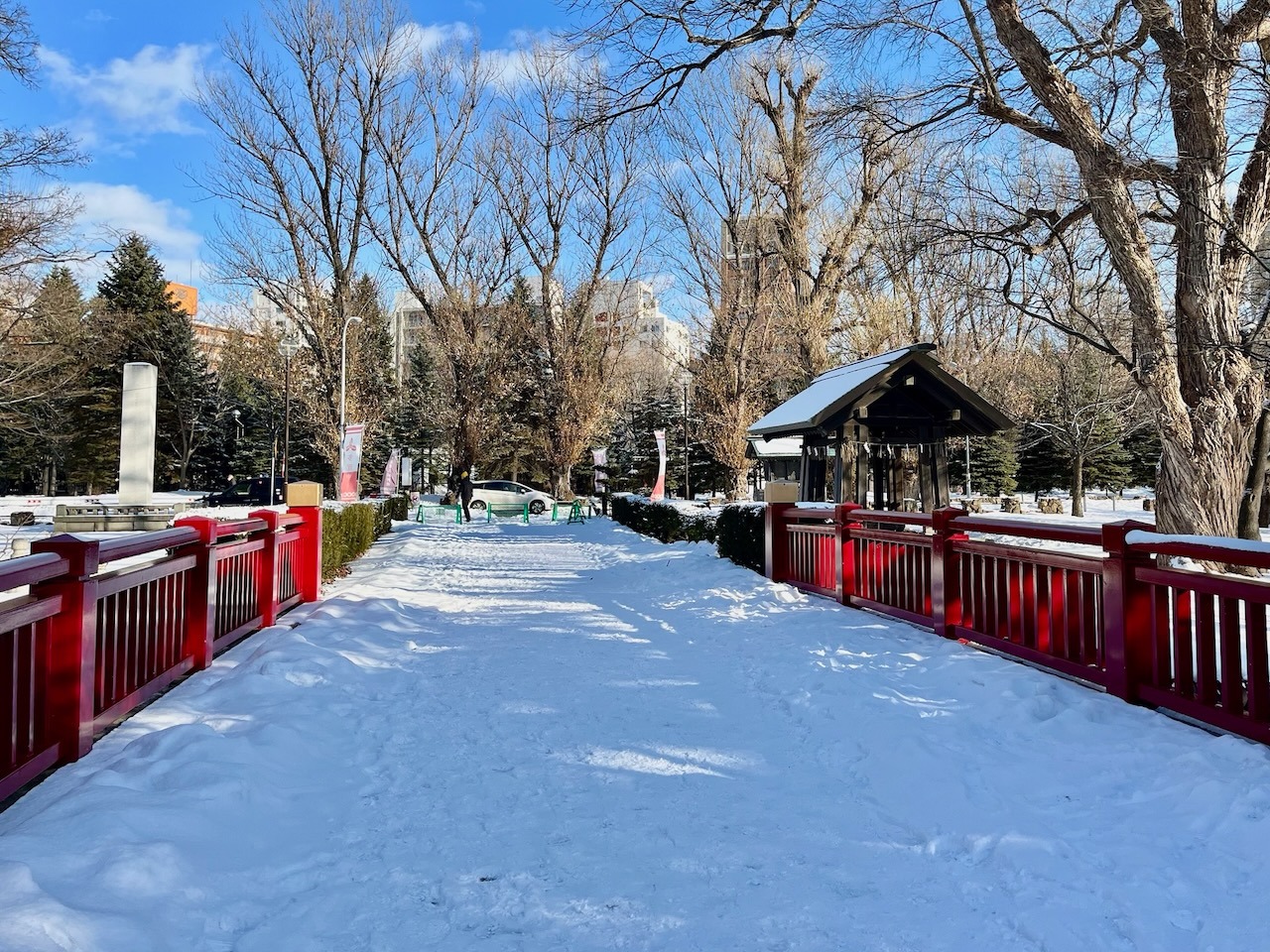 中島公園に隣接した札幌護国神社。境界線が分かり難くく一体に感じる。