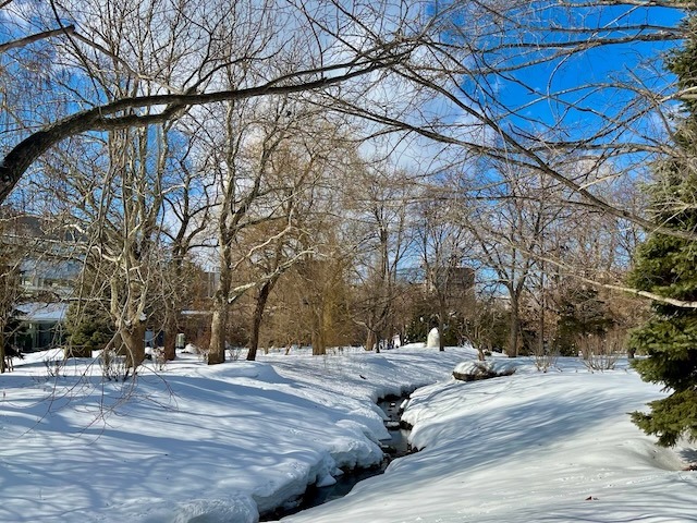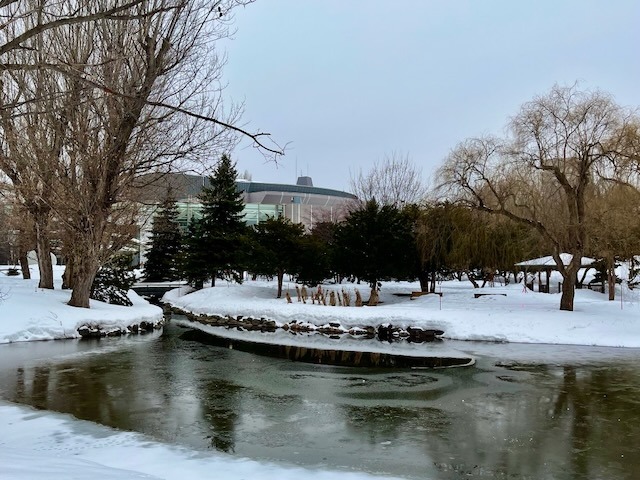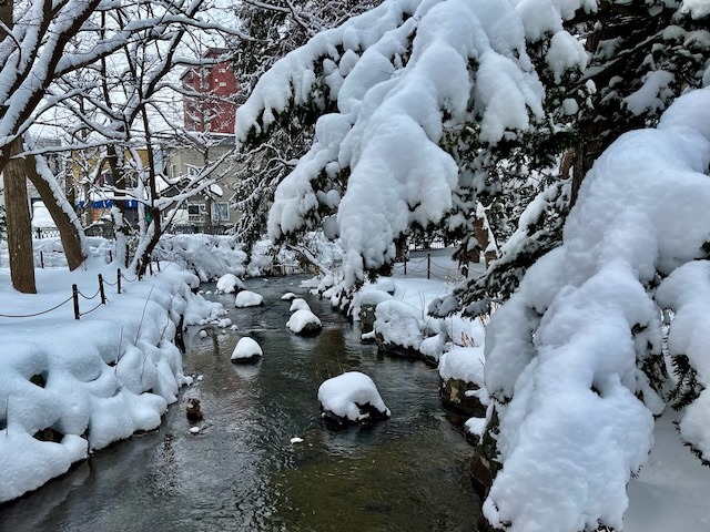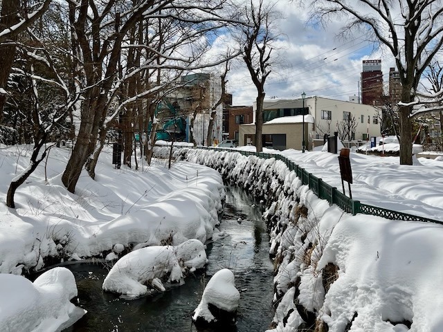 毎年、一番先に凍結する豊平館前の池、水に映り込まれた豊平館が美しい。