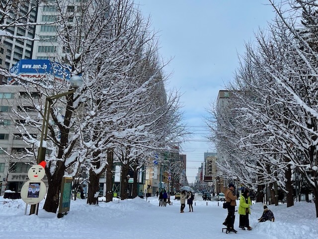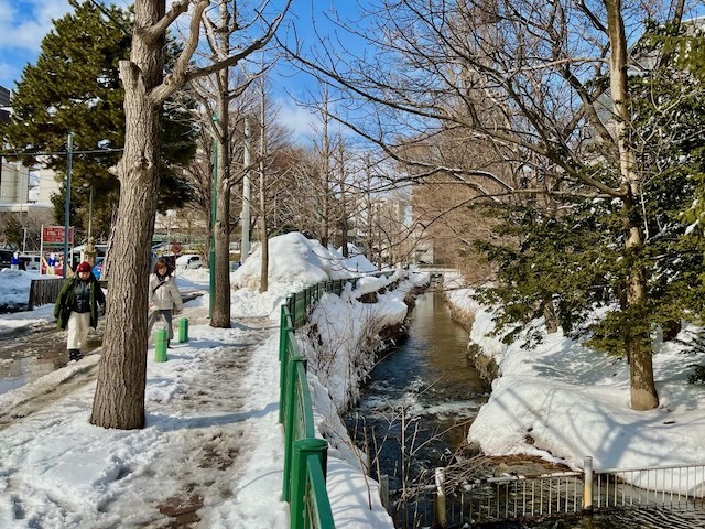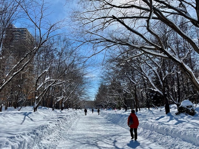 この園路を真っ直ぐ2キロばかり進めばJR札幌駅に突き当たる。