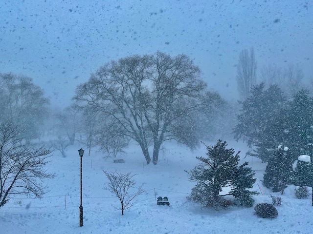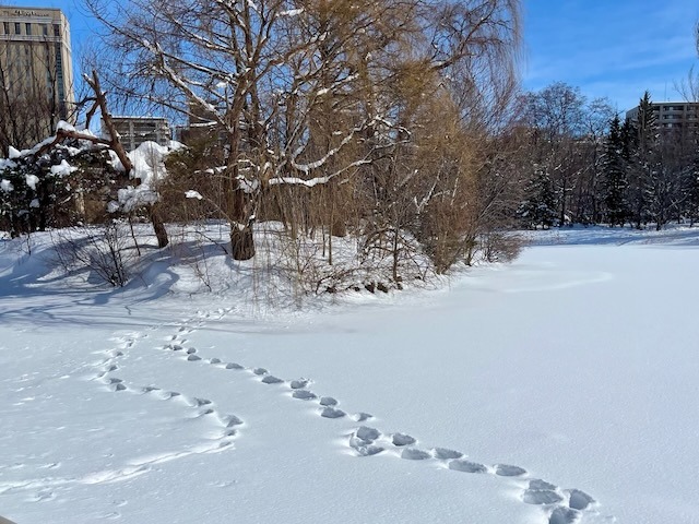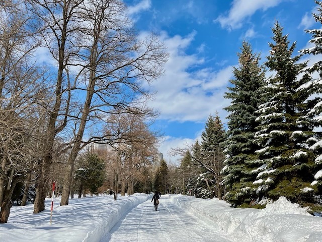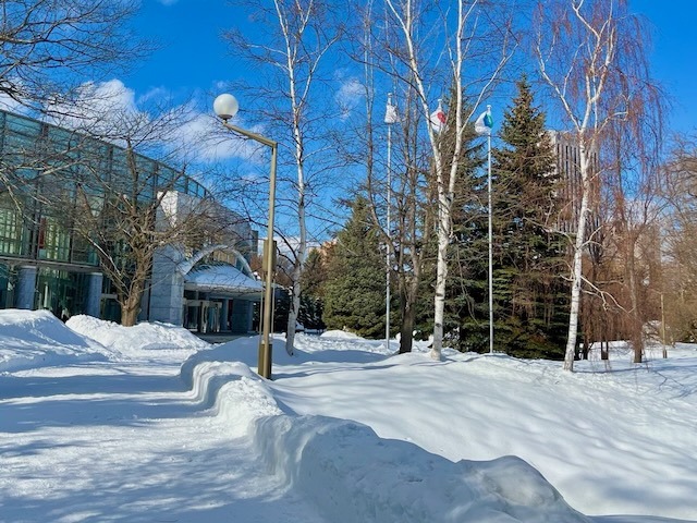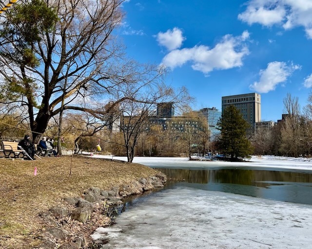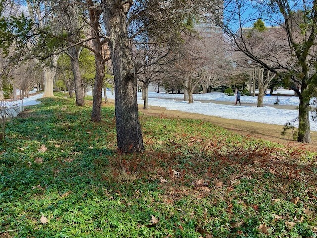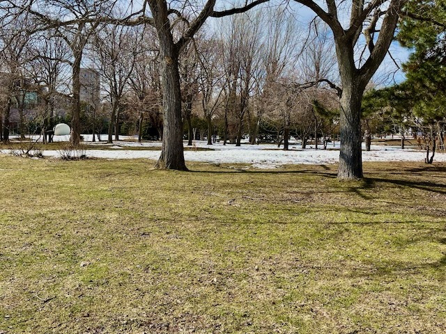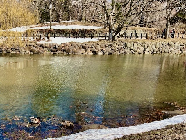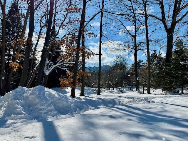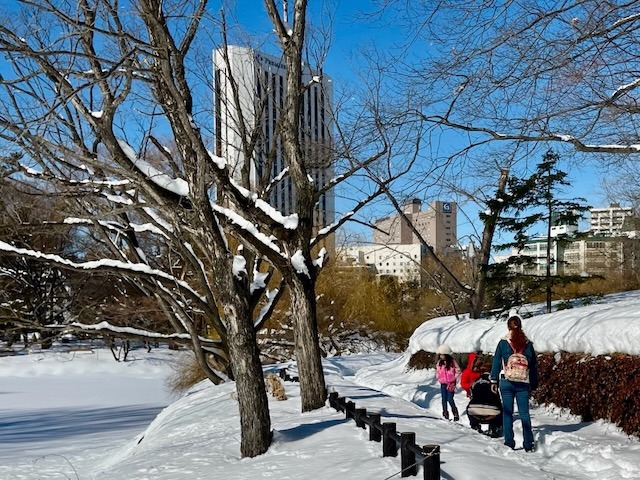 札幌市街地の雪は無くなっても中島公園はこの通り、足元は大丈夫? ついでに言うと20年ぐらい前まではコンサートへ行く園路はロードヒーティングだった。