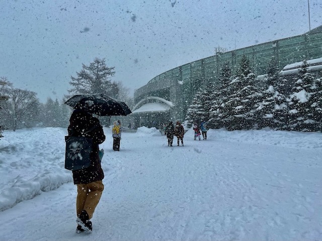 雪景色となった札幌護国神社。
